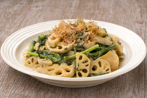 - 大葉香るシャキシャキれんこんの明太パスタ