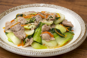 - チンゲン菜と豚肉のあんかけ風炒め