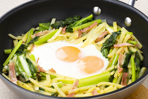 - 小松菜とじゃが芋の巣ごもりたまご