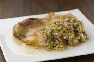 - 鶏肉のグリル 大葉ネギソース添え